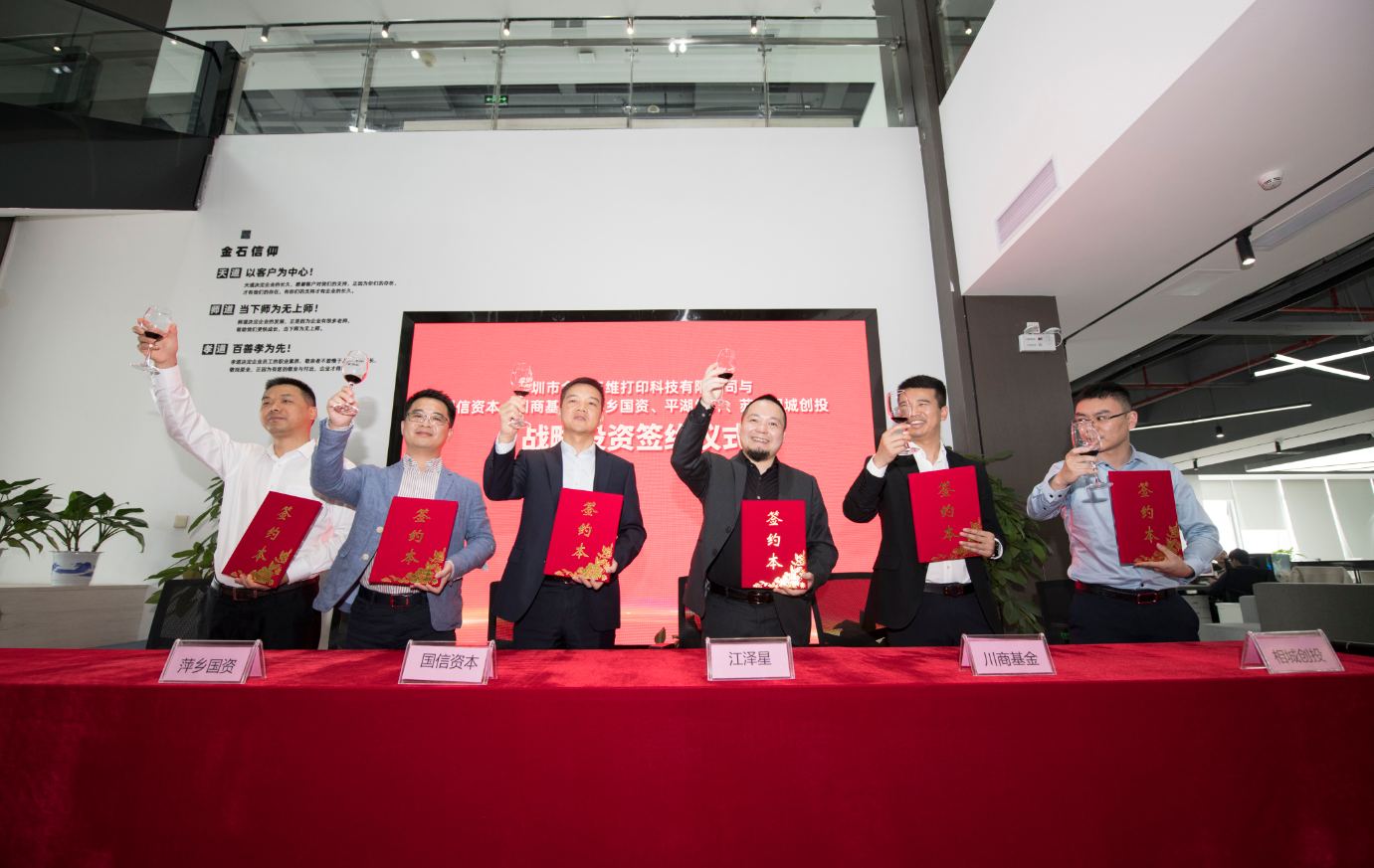 3月9日,JIUYOU.COM九游,(以下简称“金石三维”)新一轮战略投资签约仪式在深圳金石三维总部顺利举行。本轮投资的投资方主要是金石三维生产研发基地的地方国资基金,包括深圳国资委旗下的国信资本,江西萍乡国资,浙江平湖经开国资,苏州相城创投以及四川川商基金。此次战略投资完成后,公司估值超过26亿元。